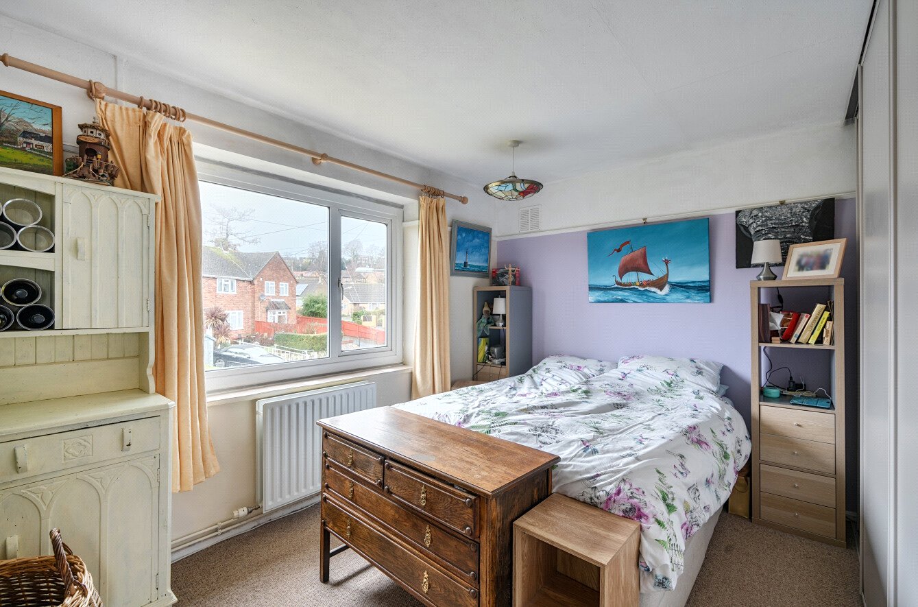 The principal bedroom is a well-proportioned double room positioned to the front of the property. A large built-in wardrobe with a pull-down hanging rail and additional storage offers excellent practicality, while a picture rail adds a subtle character detail. The second bedroom is also a double room and benefits from a side-facing window with views across the garden and rooftop views towards the eastern side of Wincanton. This room also features a generous over-stairs storage cupboard fitted with shelving, making excellent use of the available space.