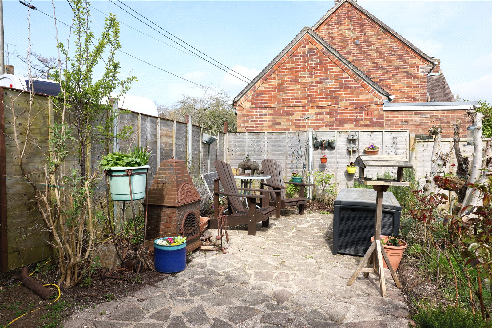 The rear garden enjoys a desirable south-facing aspect, making it ideal for enjoying the sun throughout the day. A paved patio provides an excellent space for outdoor seating and dining, leading onto a good-sized lawn. To the right of the pathway is a greenhouse and vegetable garden, perfect for those with an interest in home growing. Tucked discreetly behind the rear of the property is a bin store, along with a gate providing a right of way for neighbouring access.