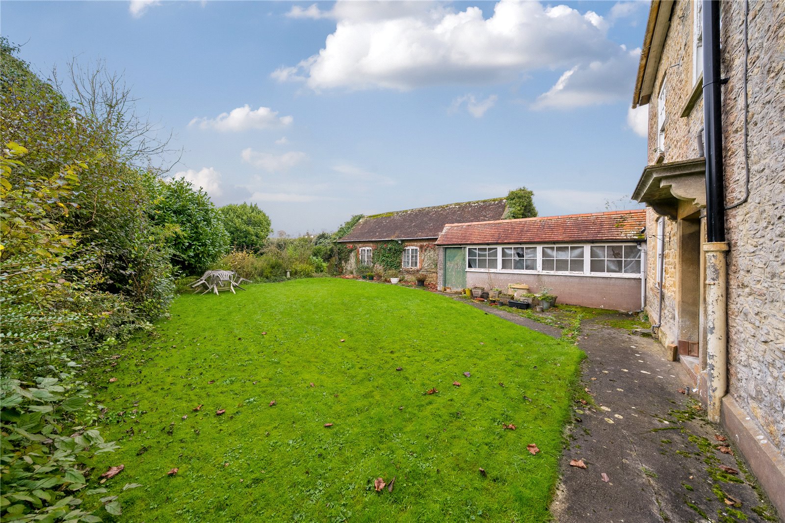 renovation, enjoying a 0.57 acre plot with outbuildings situated on the outskirts of a popular village.
