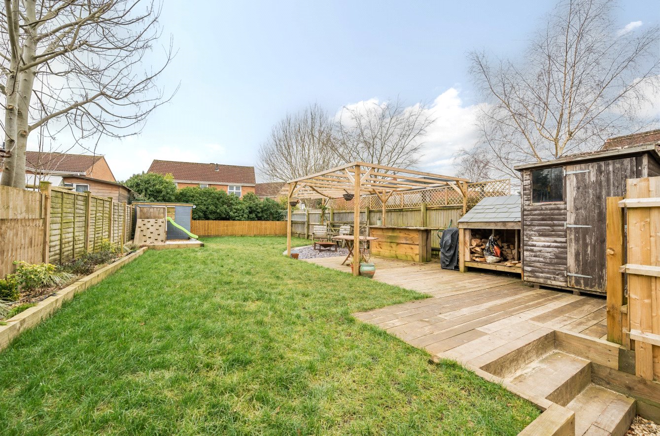 To the side of the property is a driveway with parking for three cars tandem, there is pedestrian side access via a wooden gate. The rear garden has been a labour of love, the current owners have landscaped the garden creating various seating areas. It is mainly laid to lawn and benefits from a large decking area with wooden pergola, ideal for summer BBQ’s with friends and family. The garden is unusually large for a property of this size and beyond the picket fencing there is a further garden area ideal for a summer house or allotment style garden should you wish.