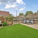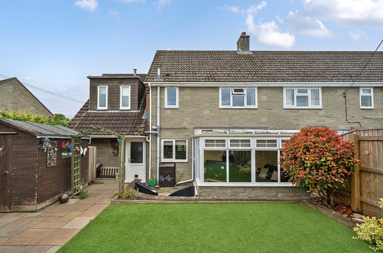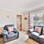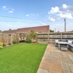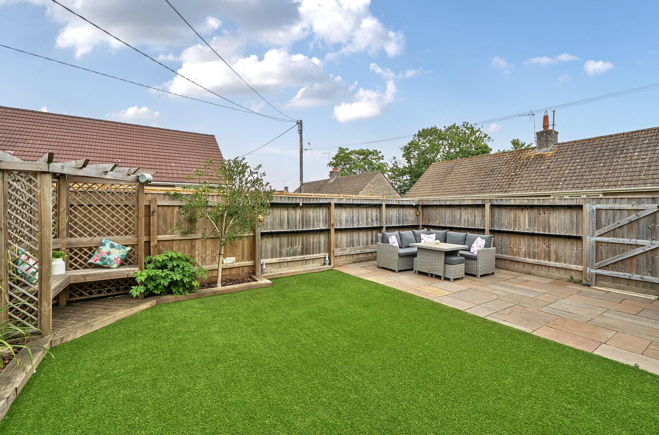 The house sits behind a low stone wall with black wrought iron gates opening onto the driveway in front of the 1½ size garage with up and over door, electricity and lighting. A lawned area to the left is bordered with established shrubs. The low-maintenance, private rear garden is fully enclosed with wooden fencing and has been landscaped with an area for seating just beyond the conservatory. Steps lead up to a paved patio area with a wooden shed and gate to a pathway at the side of the house. An area of artificial lawn is bordered by railway sleepers and a wooden corner arbour seat is a beautiful addition to the space.