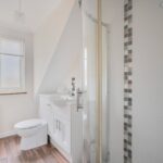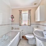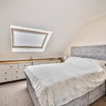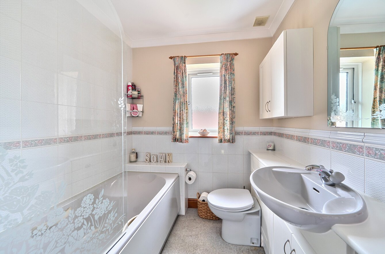 Upstairs, an attractive glass display shelving unit is inset into the wall. A double bedroom to the front is fitted with built-in wardrobes, dressing table and door to a large airing cupboard. The double bedroom to the rear is also fitted with a built-in wardrobe with both rooms having the use of the family bathroom with bath and electric shower over, obscured window, white heated towel rail and vanity unit with sink and WC. The fully boarded loft is accessible from the landing with access ladder. Into the extension, the spacious principal bedroom with large, pitched roof Velux and en-suite shower room with sink and WC is an impressive room and a home office is located across the hallway overlooking the garden.