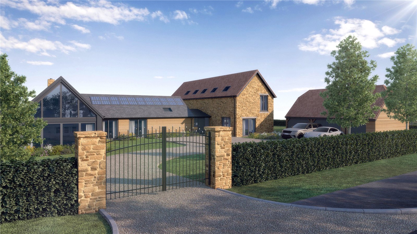 Designed with both elegance and energy efficiency in mind, the home will combine natural local stone, warm cedar cladding, and a red double Roman tiled roof for a timeless yet modern finish. Powder-coated aluminium windows and doors will ensure sleek, low-maintenance detailing throughout.