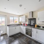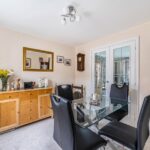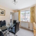 Entering the property under the storm porch, with tiles underfoot that lead into the kitchen, is a hallway with understairs cupboard and cloakroom with WC, sink, obscured window and bespoke tall open unit allowing for an ironing board. A study at the front of the property provides a secluded space for those working from home. The kitchen, with shaker style white gloss wall and base units and grey wood effect worktop, is fitted with a double oven, five ring gas hob and extractor, dishwasher, fridge/freezer, washing machine and stainless-steel 1½ bowl sink and drainer. A breakfast bar to the left sits beneath wall cupboards with central glass fronted doors and back door to the rear garden. The bright and airy sitting room, with wall mounted electric fire, enjoys ample natural light from French doors to the conservatory, fitted with vertical blinds, and glass panelled doors into the separate dining room. The conservatory is a fabulous addition to this home and benefits from Pilkington self-clean glass, reflective tinted glass and roof vent, electricity and lighting.