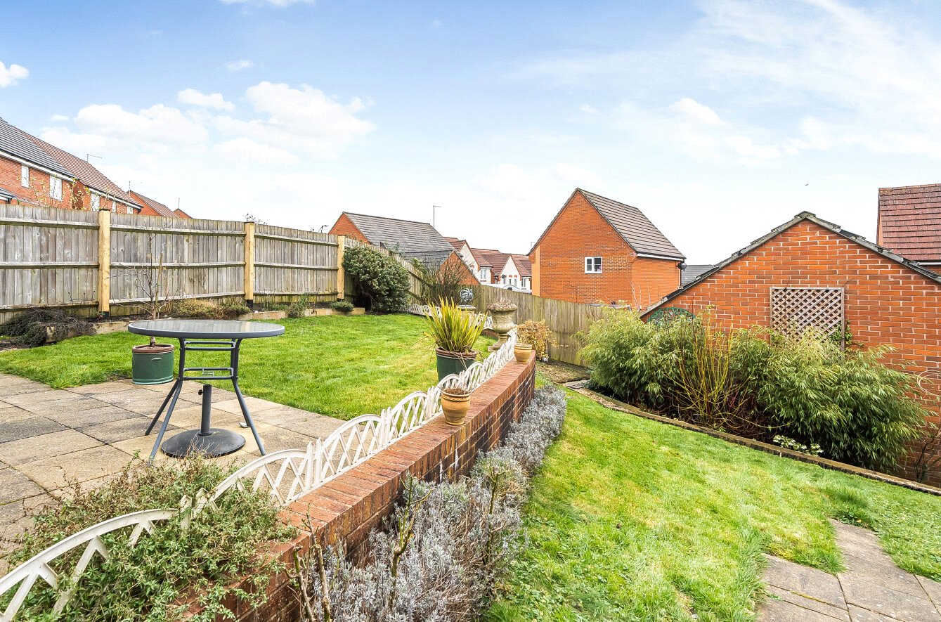 The enclosed split level rear garden is mostly laid to lawn with raised planters to the left and a paved patio that runs across the rear of the property providing space for a garden suite, outside tap and steps down to a further lawned area, lineated by a low brick wall and white border edging, with wildlife section beyond. A door provides access into the rear of the garage, with electricity, lighting and worktop with space for a tumble dryer and up and over door to the front. A shed tucked behind the garage provides additional storage.