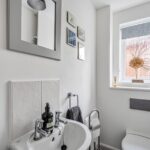On the first floor, the principal bedroom to the front, has a built-in wardrobe with cupboard space and en-suite shower room with WC, vanity unit with inset sink and mirrored wall cabinet. Two further double bedrooms and one single bedroom have the use of the tiled family bathroom with bath and shower over, WC, sink, mirrored cabinet, heated towel rail and deep sill to the front of the obscured window. An airing cupboard is found in the landing with loft hatch to a fully boarded loft with lighting and double glazed windows with slimline Venetian blinds are present throughout the property.