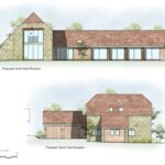 Entering the hallway, a downstairs cloakroom with WC and large double cupboard provides storage. The left wing of the home opens into a welcoming open-plan kitchen, dining and living space, featuring a vaulted ceiling and expansive glazing that floods the room with natural light while framing far-reaching countryside views and providing direct access to the garden. The contemporary kitchen will be fitted with high-quality appliances, a central island and additional breakfast bar, offering generous worktop and entertaining space. An internal door leads to the utility room, which has an external door to the garden and access to the double garage.
