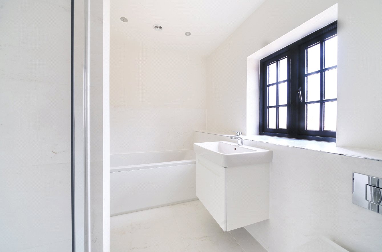 The first-floor landing provides access to both a double and single bedroom at the rear of the property, an airing cupboard and a further double bedroom to the front. The family bathroom, with ceramic floor and wall tiles and obscured window, has a luxurious feel and is fitted with a bath, separate shower, vanity unit and WC.