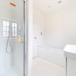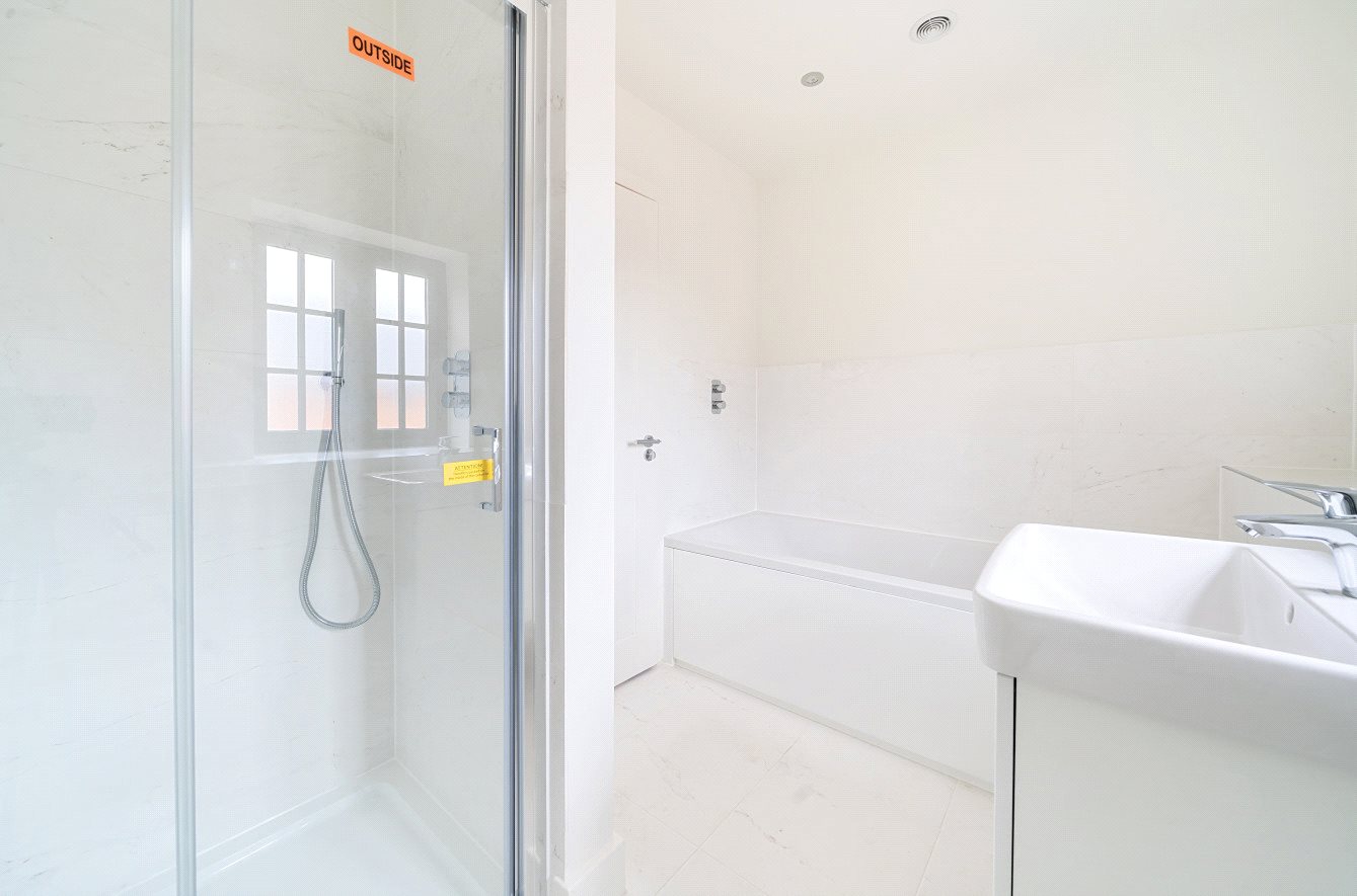 The first-floor landing provides access to both a double and single bedroom at the rear of the property, an airing cupboard and a further double bedroom to the front. The family bathroom, with ceramic floor and wall tiles and obscured window, has a luxurious feel and is fitted with a bath, separate shower, vanity unit and WC.