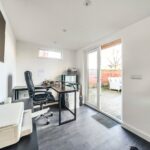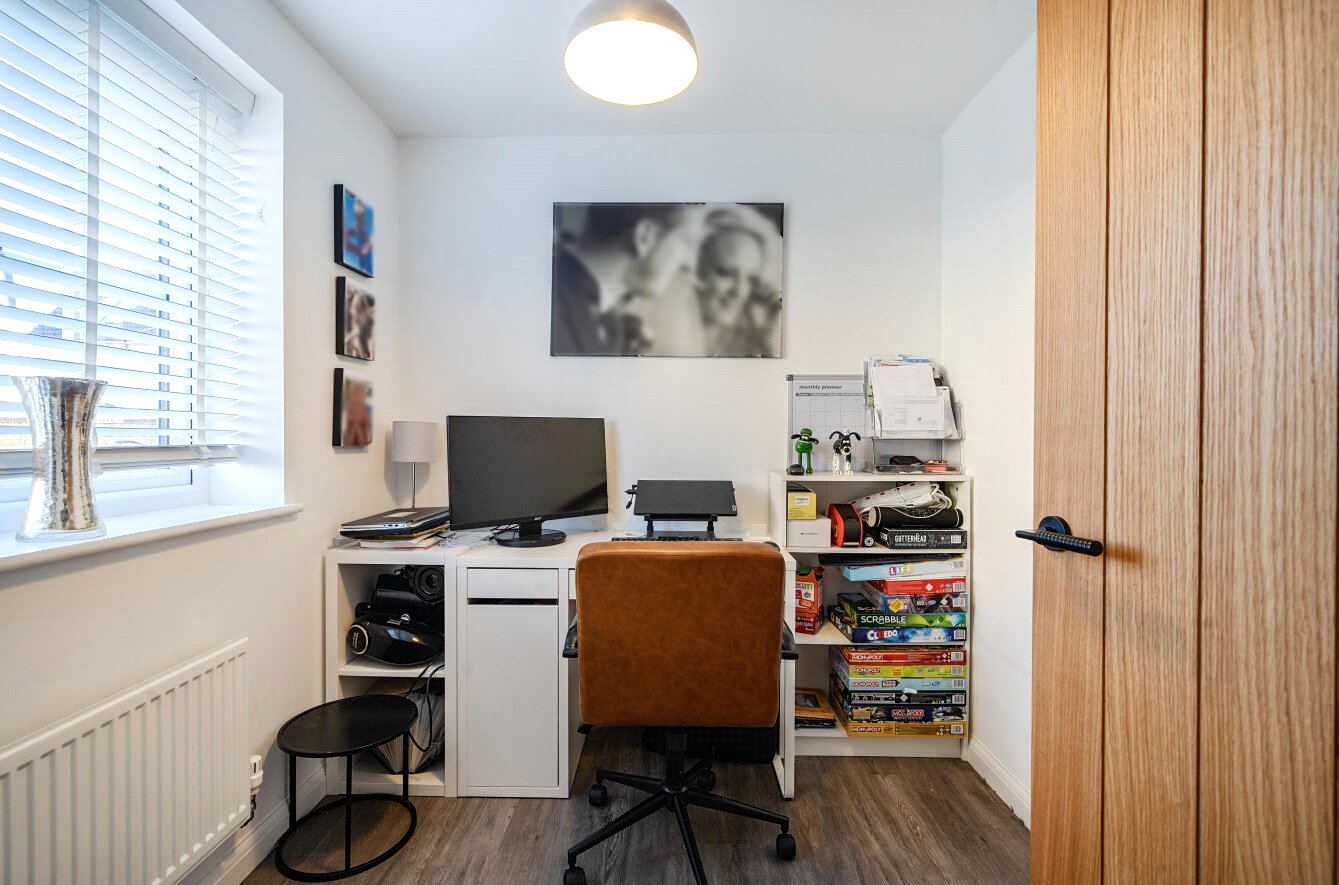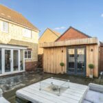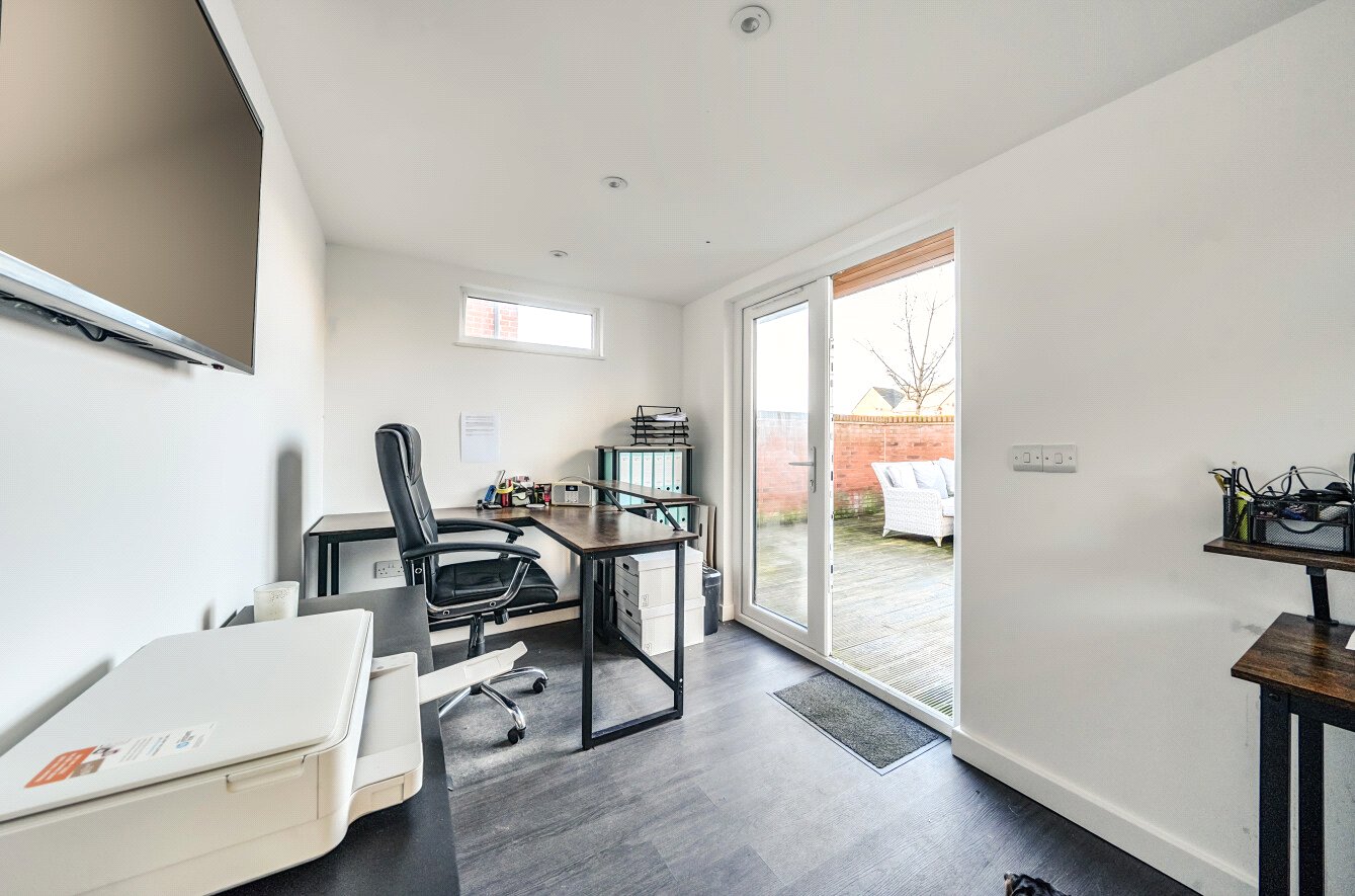 The fully enclosed rear garden has been designed for low maintenance, featuring a combination of patio and decking areas with lighting, electrical sockets and a side gate providing access to the driveway. French doors from both the dining room and kitchen open onto the patio, creating an excellent flow between indoor and outdoor spaces. A standout feature of the garden is the fully insulated high-quality outbuilding, currently used as an office with underfloor heating, additional heating, dual-aspect windows, double-glazed doors, electrics and lighting – making this a versatile year-round space.