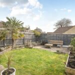 The rear garden is attractively arranged with a small patio directly outside the French doors, leading onto a lawned area. At the far end of the garden, a larger patio provides an ideal space for outdoor seating and entertaining. The garden also features timber-edged planting beds, a palm tree and covered workshop/social space with wooden worktops and seating. Further benefits include an outside tap, side gate access to the driveway and garden access to the garage, which is fitted with lighting, electrics, useful worktop space and a side obscured window.