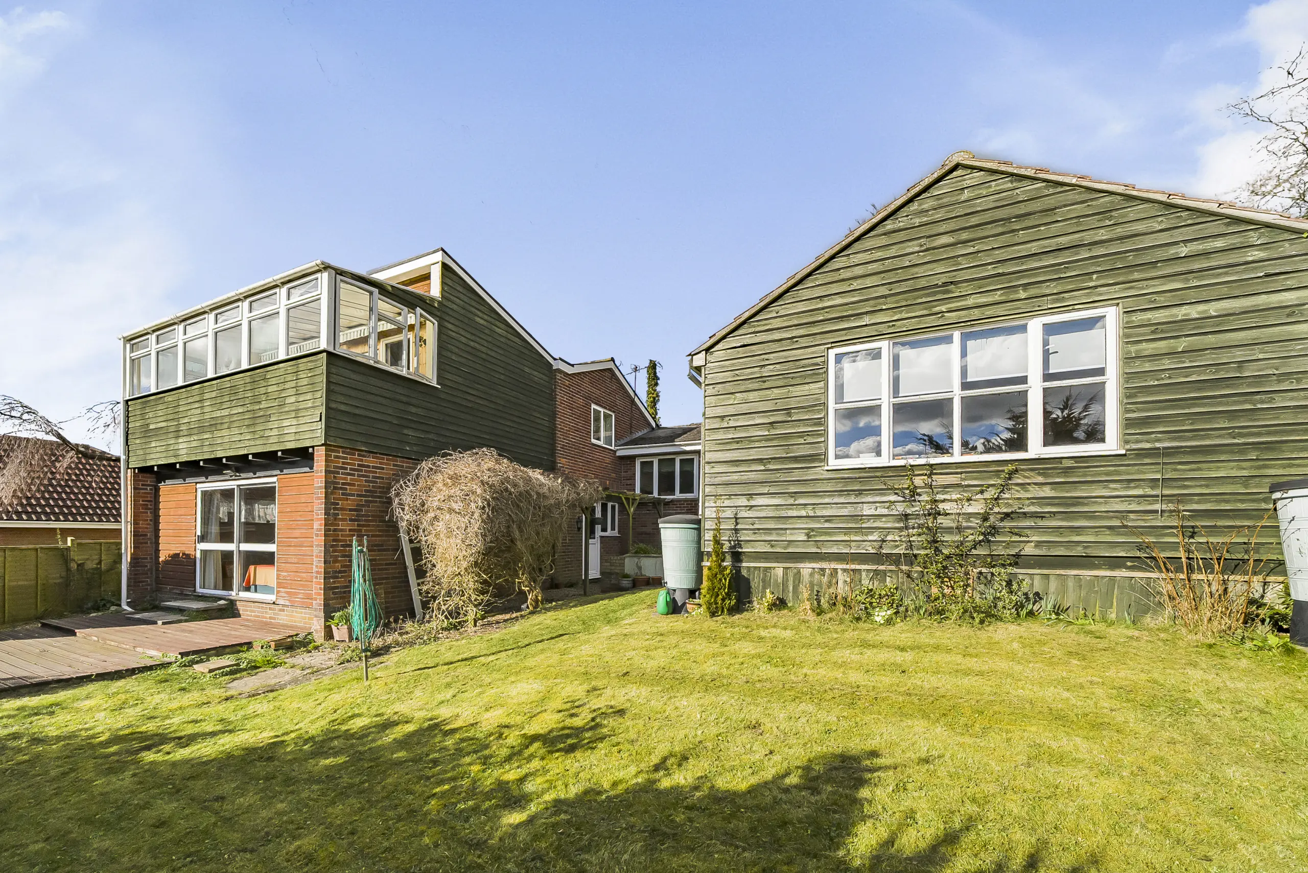 The front door of the property is located at the end of a no-through road. Double gates open to a gravelled driveway with private parking for several cars with external doors into the utility room on the ground floor and the kitchen on the lower ground floor. A large studio with lighting and electricity is the perfect space for a home office, games room or gymnasium. A store, with external access door, also makes up a section of the studio. Steps, next to raised planted borders, and a sloped pathway, lead down to the rear garden which is mostly laid to lawn and enjoys a decking area accessible from the lounge on the lower ground floor. The garden is bordered on all sides by closeboard fencing and enjoys privacy as it sits on the lower ground floor level.