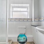 There are two well-proportioned double bedrooms, with the principal bedroom enjoying a peaceful garden aspect, while the second bedroom faces the front of the property. A half-tiled shower room completes this home, fitted with a vanity sink with cupboards below, WC, corner shower and obscured window.